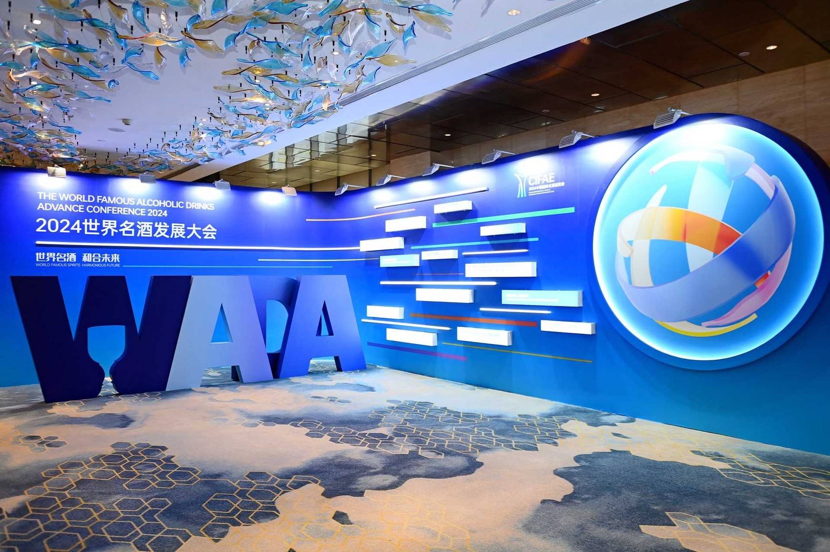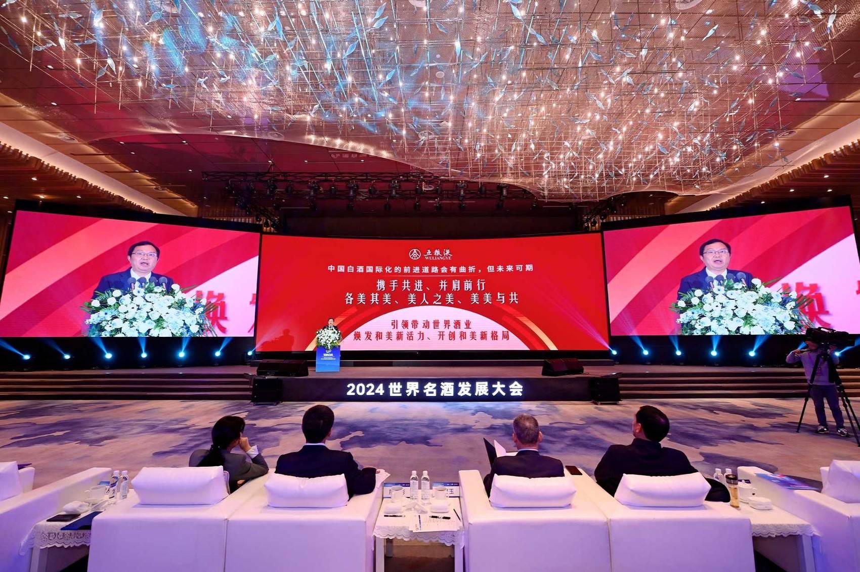 12月19日,作为2024中国国际名酒博览会重要活动之一,由中国酒业协会、四川省酒业协会主办,五粮液承办的“2024世界名酒发展大会”在宜宾举行。来自五粮液、茅台、洋河、汾酒、泸州老窖、剑南春等国内知名酒企代表,共同开启了一杯美酒的环球探索之旅,共同勾调出“各美其美,美美与共”的酒业国际化拓展“和美”生态。