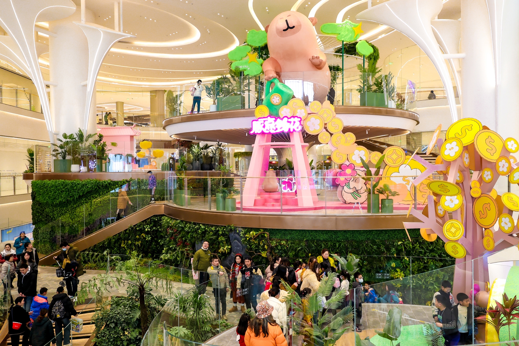 据介绍,天府招商花园城拥有26万平方米商业建筑面积,其中购物中心达12万平方米,商业街占14万平方米,项目紧邻3450亩天府公园,凭借独特的“公园+商业”模式,以及由外至内的无界公园场景打造,以“都市野趣生活场”为定位,创新呈现“精品城市奥莱、天府少年宫、城市运动中心”等主题业态,带来超40+城市及区域首进品牌,一站式营造购物、休闲、娱乐、社交、运动等多类场景,开业同步带来“蛋仔派对”“卡皮巴拉”两大热门IP主题展,首日吸引周边和其他区域众多家庭消费客群。