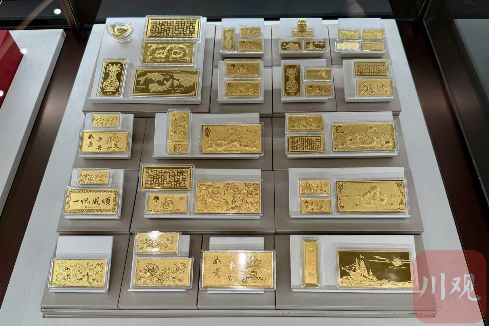 成都某金饰专柜陈列出众多蛇年贺岁金饰。