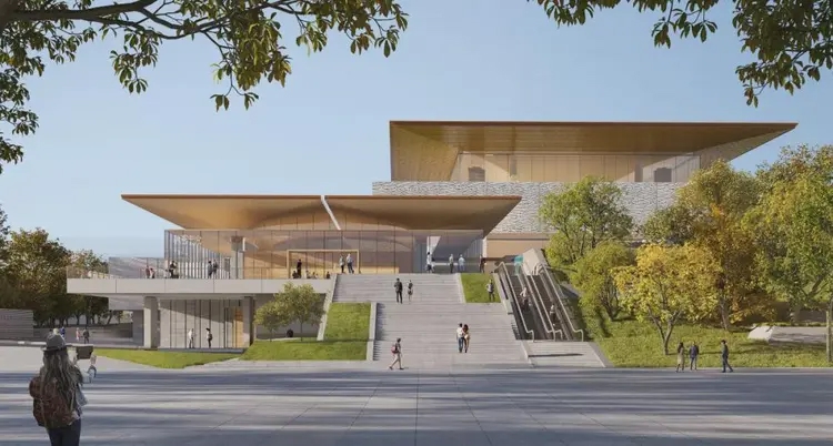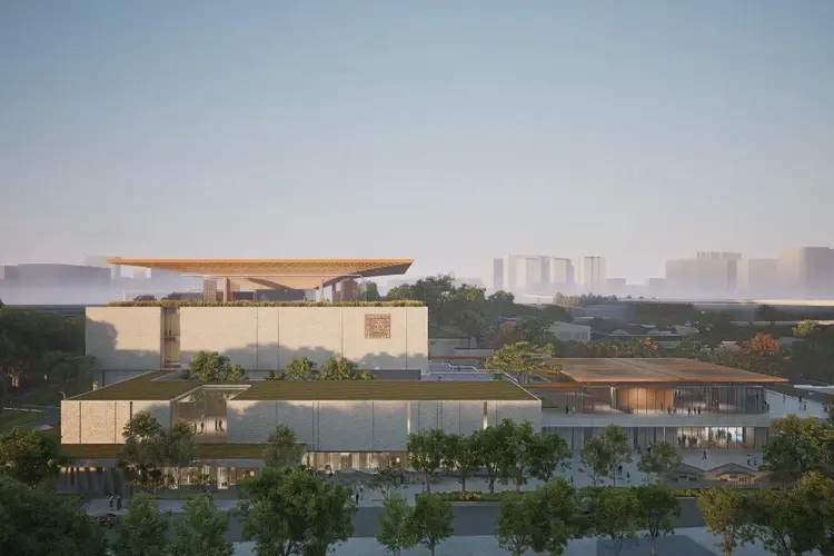 四川中国白酒博物馆择址泸州市中心,位于长江之畔、凤凰山巅,毗邻全国重点文物保护单位——国宝窖池群,文化遗存丰富,拥有白酒文化与历史文化、长江文化相互叠加的独特文化记忆。项目总用地面积109.6亩,规划建设面积8.4万平方米,规划展陈面积3.45万平方米,投资达15亿元,整体设计依山就势,江、山、林、馆、窖和谐共融,游客可上山观展览、下山观遗址。