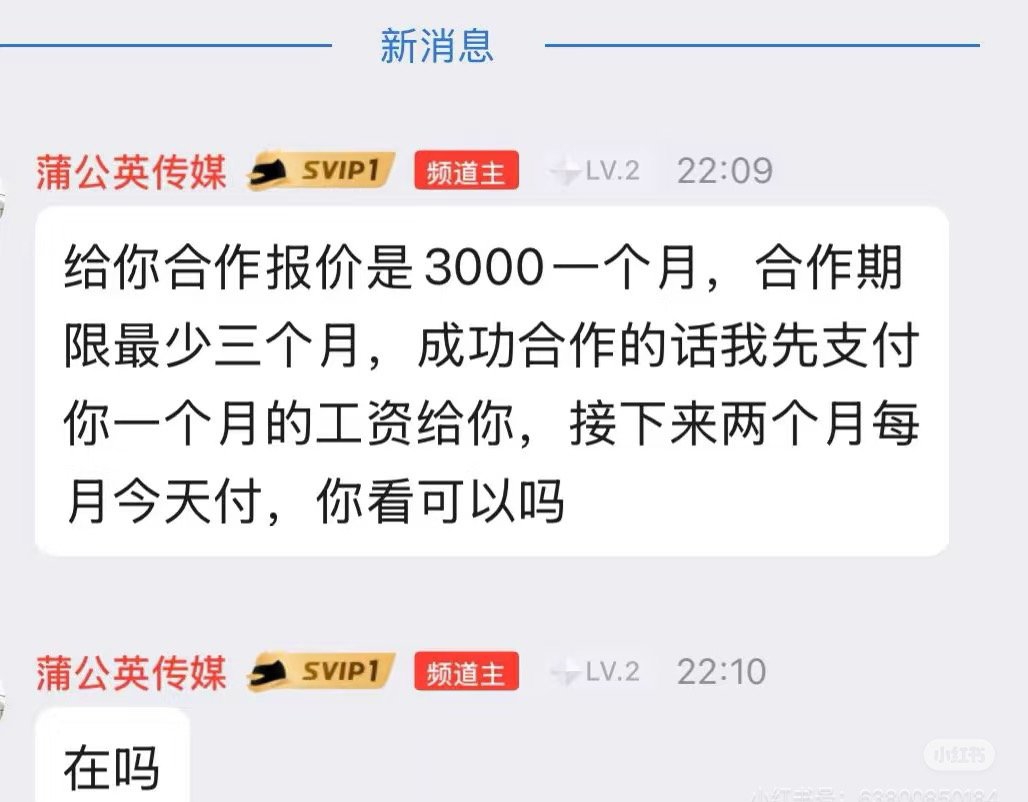 在小红书上收到私信,对方称希望合作推广,推广费用报价很高且可马上支付一个月推广费。当被引导到某第三方担保平台签合同打款时,却被告知操作失误导致账户冻结,需充钱后才能提现。这种主动找上门的“合作推广”,是“天上掉馅饼”还是骗局?