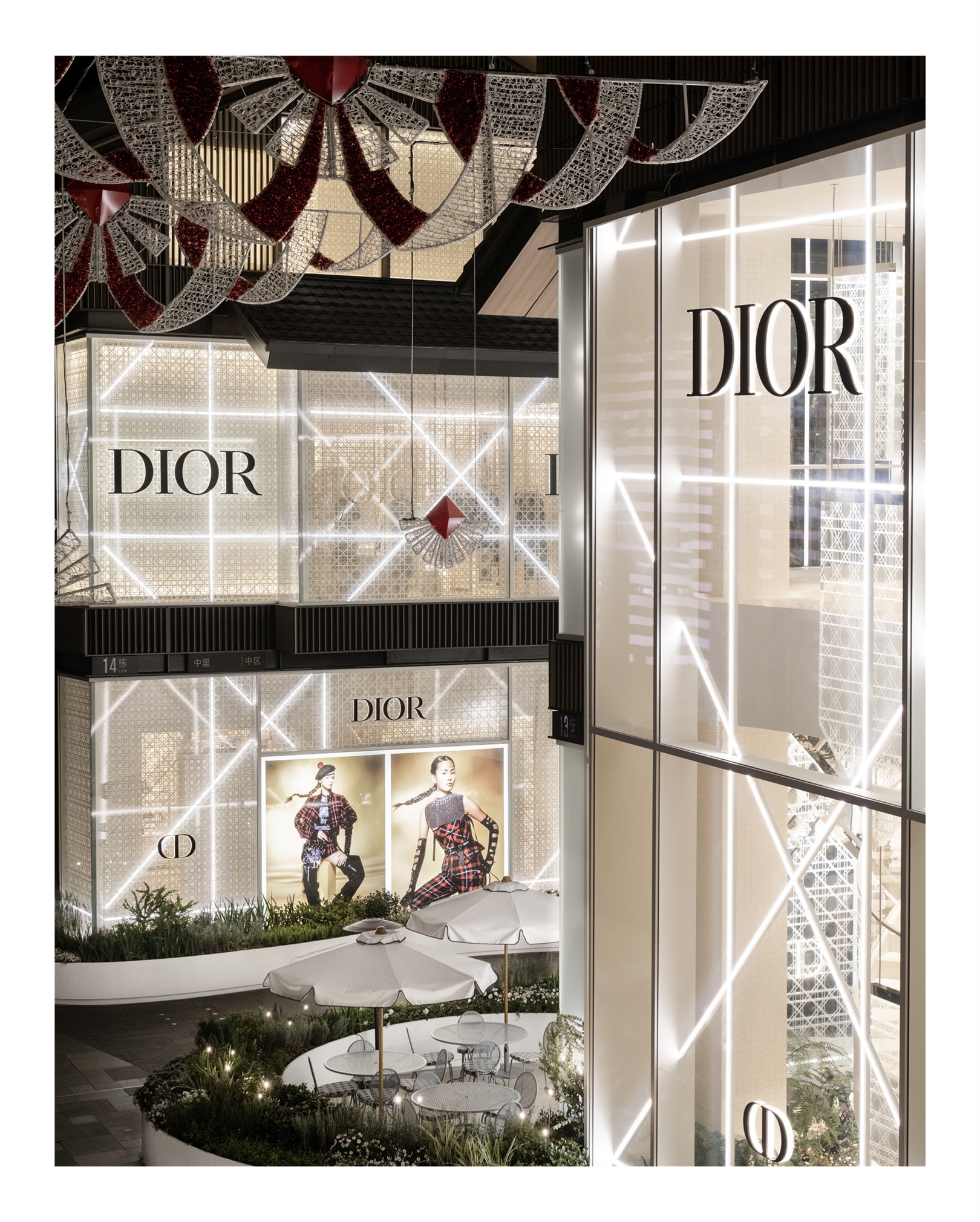 一抹高达三层楼的迪奥藤格纹形灯饰,蔓延于川西民居风格坡顶之下的建筑立面,在长达数十米的里巷之中绽放耀眼光芒,令过往行人驻足、徜徉。迪奥成都太古里男装精品店一楼,精心打造的宽敞花园空间由室内延展至店外,首秀中西部的迪奥咖啡馆(CAFE DIOR BY ANNE-SOPHIE PIC)便坐落于此,契合当代成都生活的时髦与松弛感。该首店由迪奥品牌与米其林三星主厨安娜-索菲·皮克(ANNE-SOPHIE PIC)携手呈现。