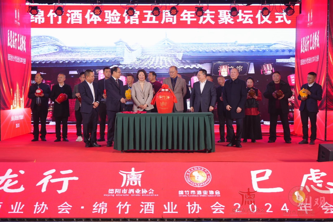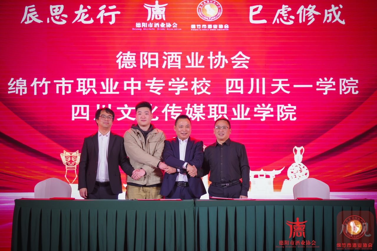 庆典现场,德阳市酒业协会分别与绵竹市职业中专学校、四川天一学院、四川文化传媒职业学院签订战略合作协议,此外还举行了绵竹酒体验馆五周年庆聚坛仪式,德阳未来发展之路,就在眼前。