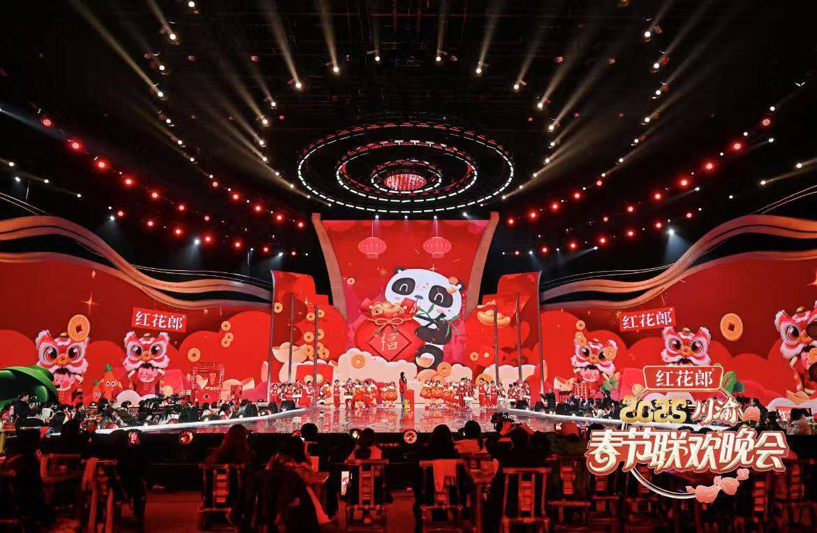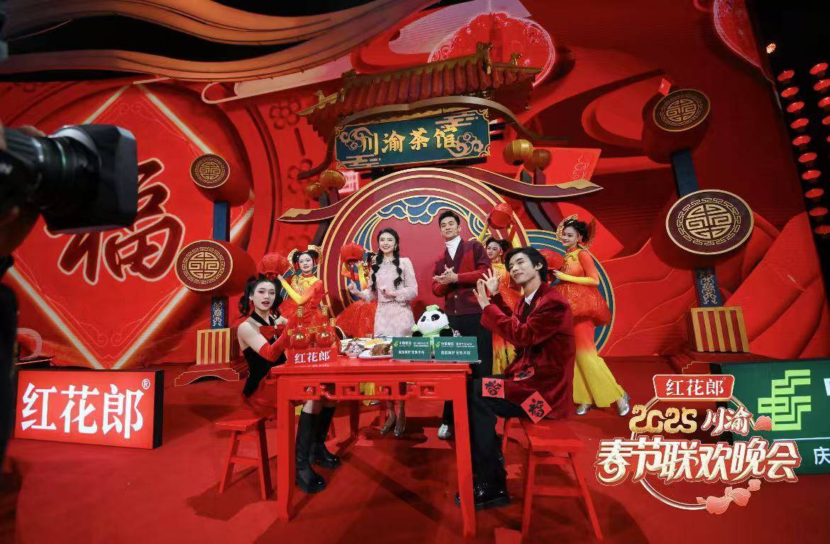 与川渝春晚一起带来无限惊喜、掀起出圈热潮的,还有红花郎——数届川渝春晚中,红花郎在镜头中频频亮相,喜庆大气的包装吸睛无数,为团聚时刻增添了一抹亮眼中国红,并在静水流深中将品牌所蕴含的“极致三品”、喜庆红火等寓意传递。