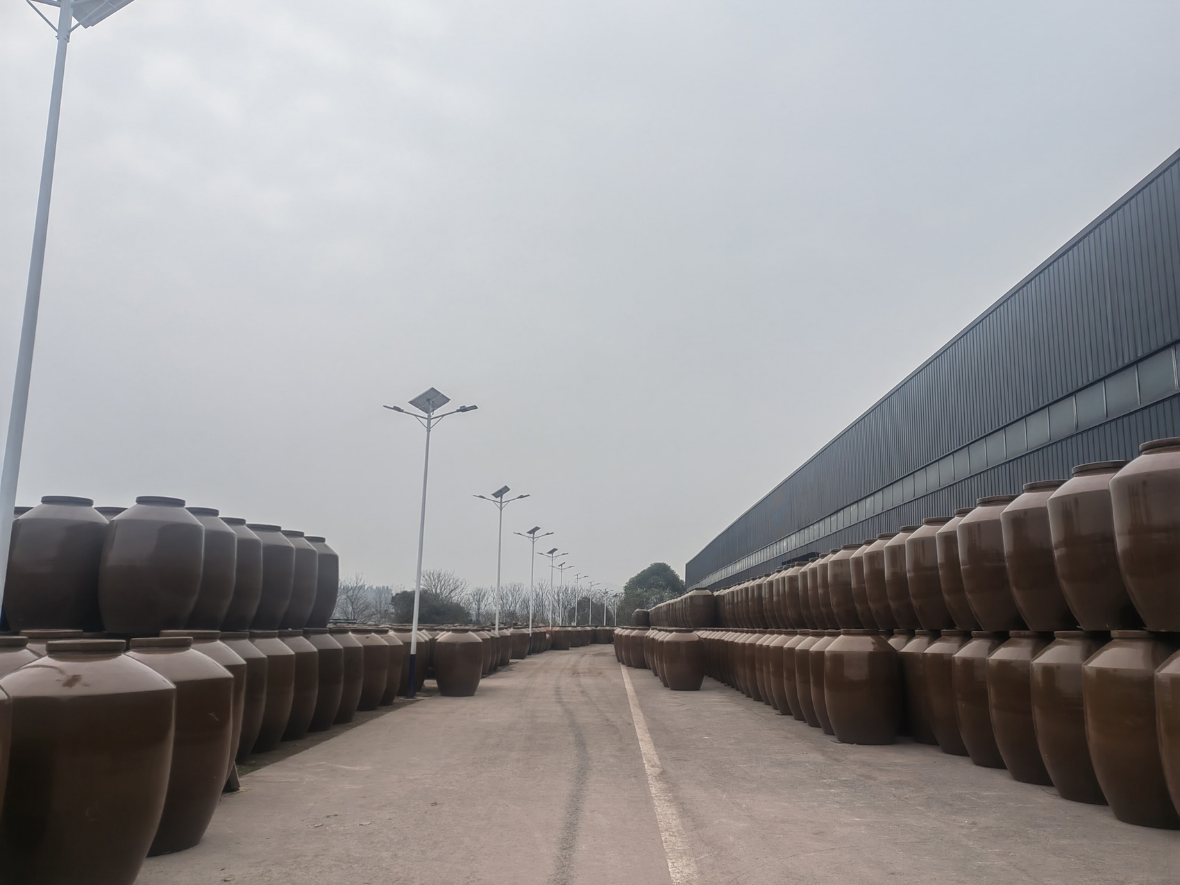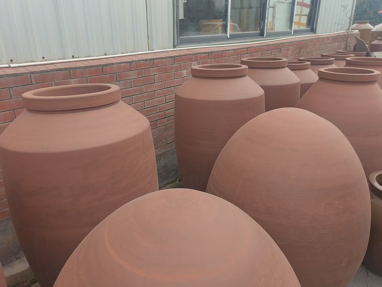 上尖、中鼓、下圆,高1.8米左右,看起来像一粒超大号的米粒竖立在那里。如此特异的造型在明峰陶业连绵的成品广场上非常的醒目。蒋秀萍告诉记者,这就是法国波尔多地区客户的定制产品,用于葡萄酒的贮存。“工艺和材料要求高,但是订单规模不大,无法批量化生产,还只是小规模业务阶段。”