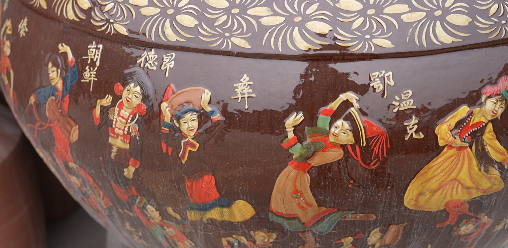 这里面有从2022年开始设计的东坡家酒酒坛,1斤到5斤规格均有,上面文化名人形象生动,艺术性颇高;陶体绘有荷叶的五粮液酒坛,寓意着和和美美,手工烧制陶盖与陶口完美贴合,不用加密封圈就能很好地实现气密性……此外还有展会展览使用的文创酒坛,造型独特,制作精美,成为刘勇团队以及整个荣县陶产业发力重要领域。