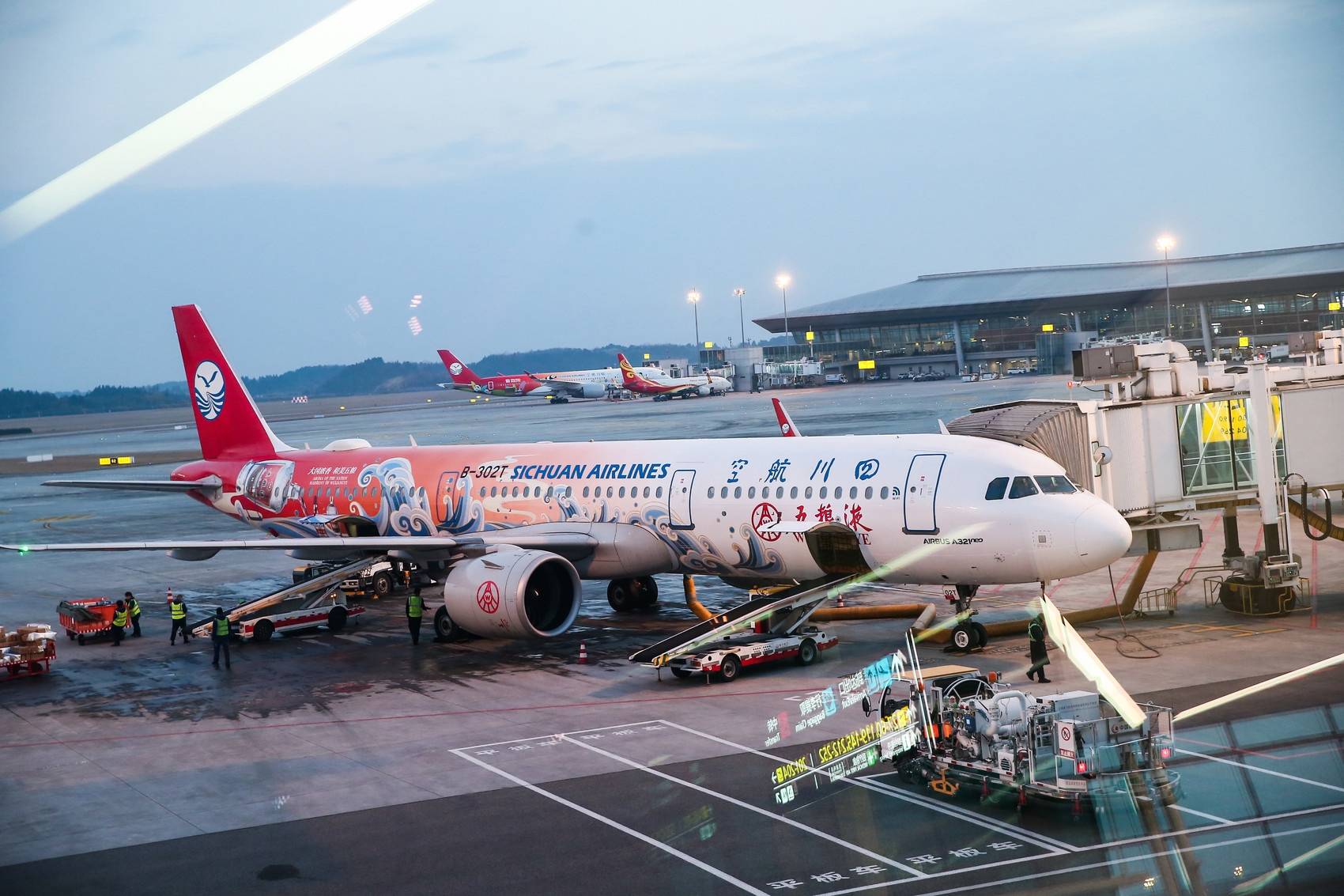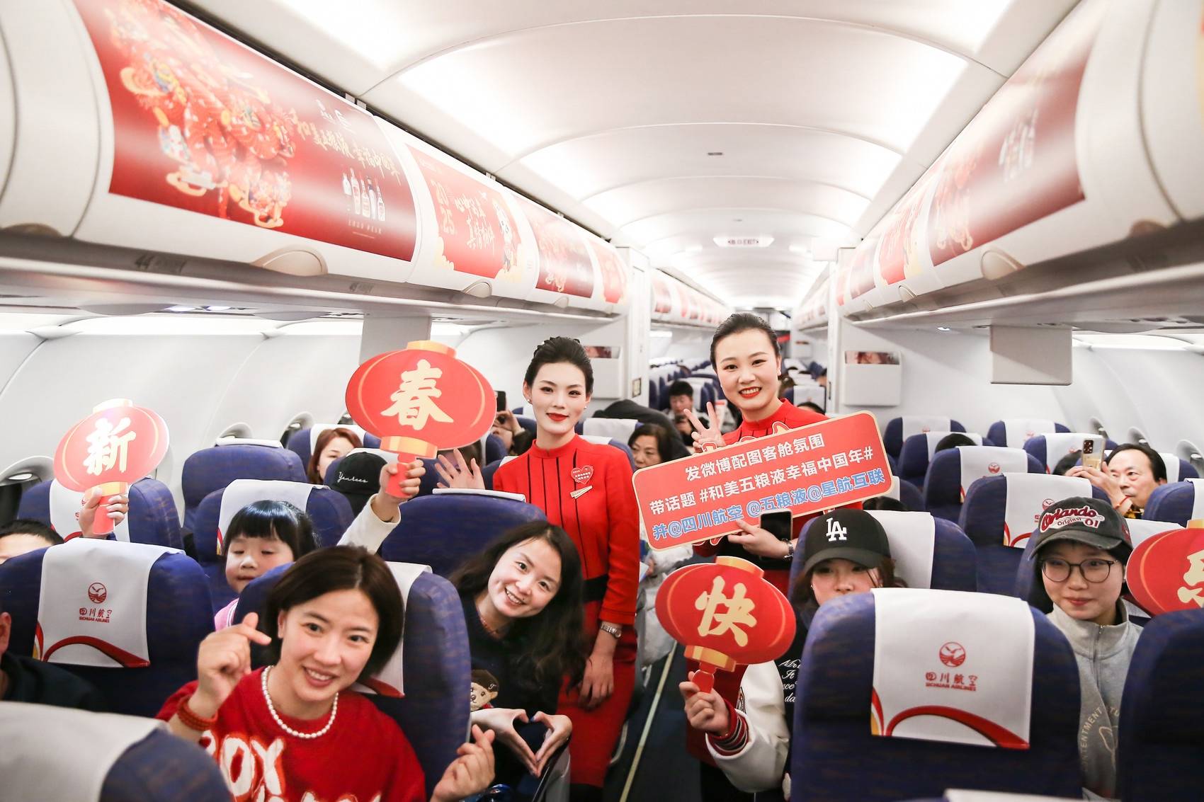 “把粉丝宠上天”的五粮液,今年春节期间继续联手川航推出主题航班,温暖乘客的回家路。此次五粮液元春主题航班活动从1月22日持续到2月12日元宵节,共计22天。每天将在成都-北京、上海-成都、成都-广州、成都-深圳、成都-三亚或“五粮液”号涂装飞机执飞的航班中选取一个航班进行。每趟航班飞机的外观到内饰,再到餐食、礼品、小游戏等都是特别定制,融合了五粮液、四川航空、春节等经典元素,让乘客们在万米高空中切身感受到和美文化的独特魅力。19:15,带着浓烈的思乡之情,3U6939次航班从成都天府机场起飞,直插云霄。