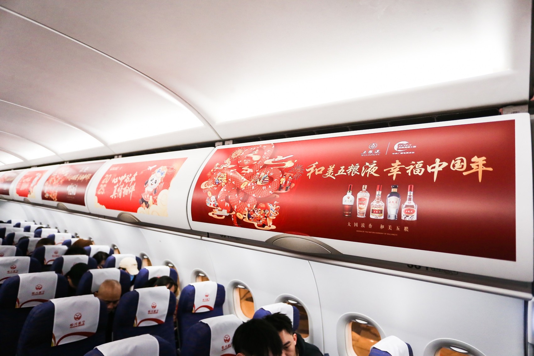 “没想到居然赶上了五粮液的‘和美航班’,真是大大的惊喜。”赶着回家团圆的张先生一走进机舱,就被浓浓的“和美”氛围所包围:行李架、小桌板上的“和美五粮液 幸福中国年”贴纸,诉说着火红的热情;座椅靠背上的“大国浓香 和美五粮”,不仅在诉说着品牌态度,也以一种诚挚的祝愿陪伴一段美好的旅程。