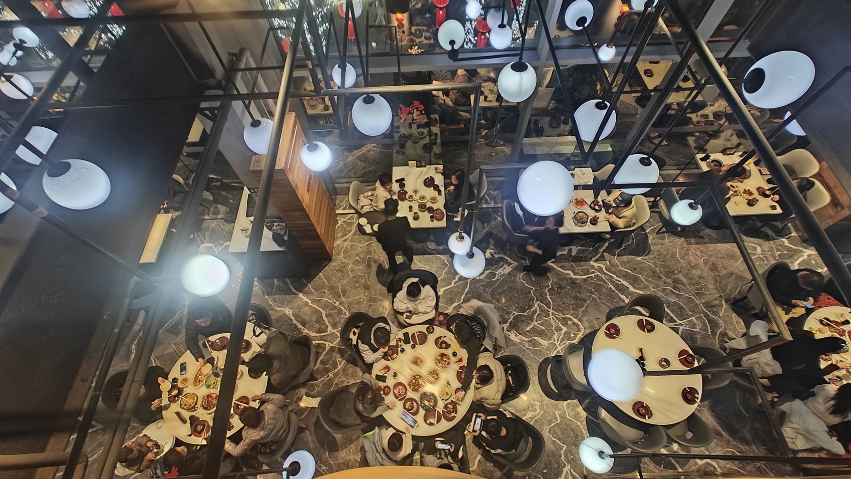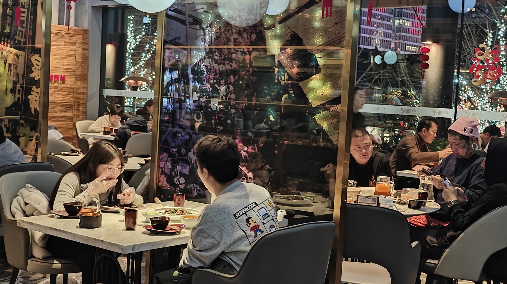 到了晚餐时间,记者来到眉州东坡大悦城店。据店内工作人员介绍,春节期间包间预订爆满,临时散客只能在大厅消费,店内热销单品主要有东坡肘子、东坡肉、毛血旺、宫保鸡丁等传统川菜,“顾客来自全国甚至海外,专门来品尝地道川菜。”
