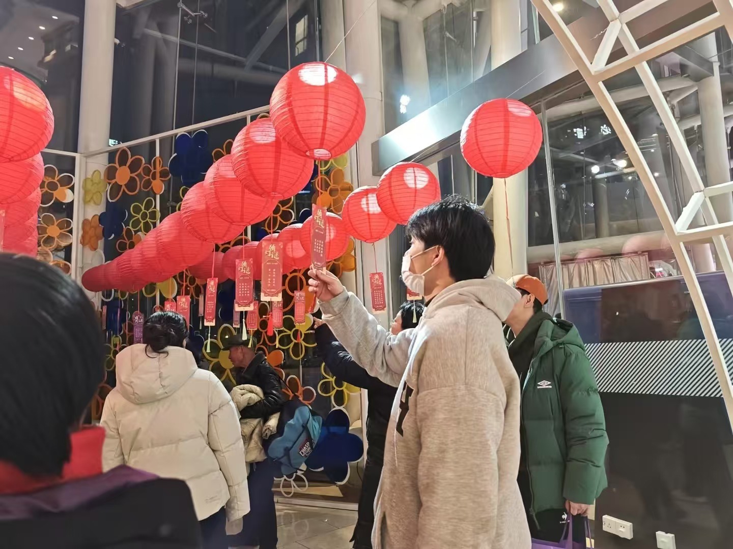 市民在成都伊藤洋华堂体验元宵节猜灯谜活动。图据受访者