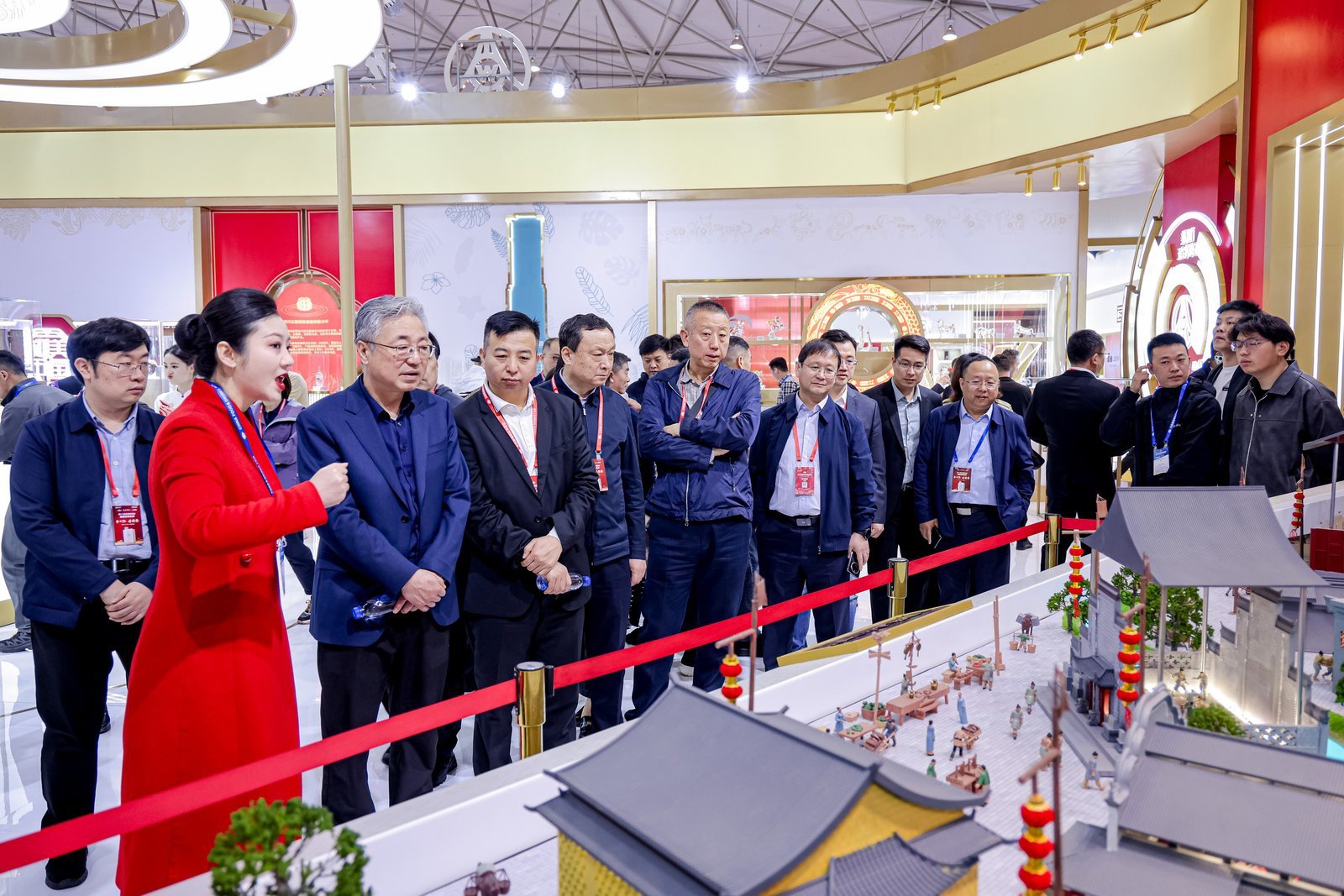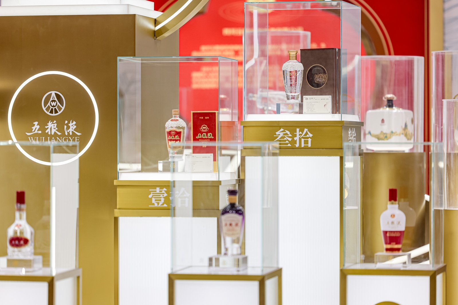 除了产品展示之外,历史传承也成为展厅设计的一个重点。现场有五粮液“老窖池群”为主题的立体展陈,通过利川永、长发升、听月楼、钟三和等八大老作坊的一脉相传的沿革,向各界客商讲述五粮液文化传承故事、匠心酿造精神、高质量发展历程。