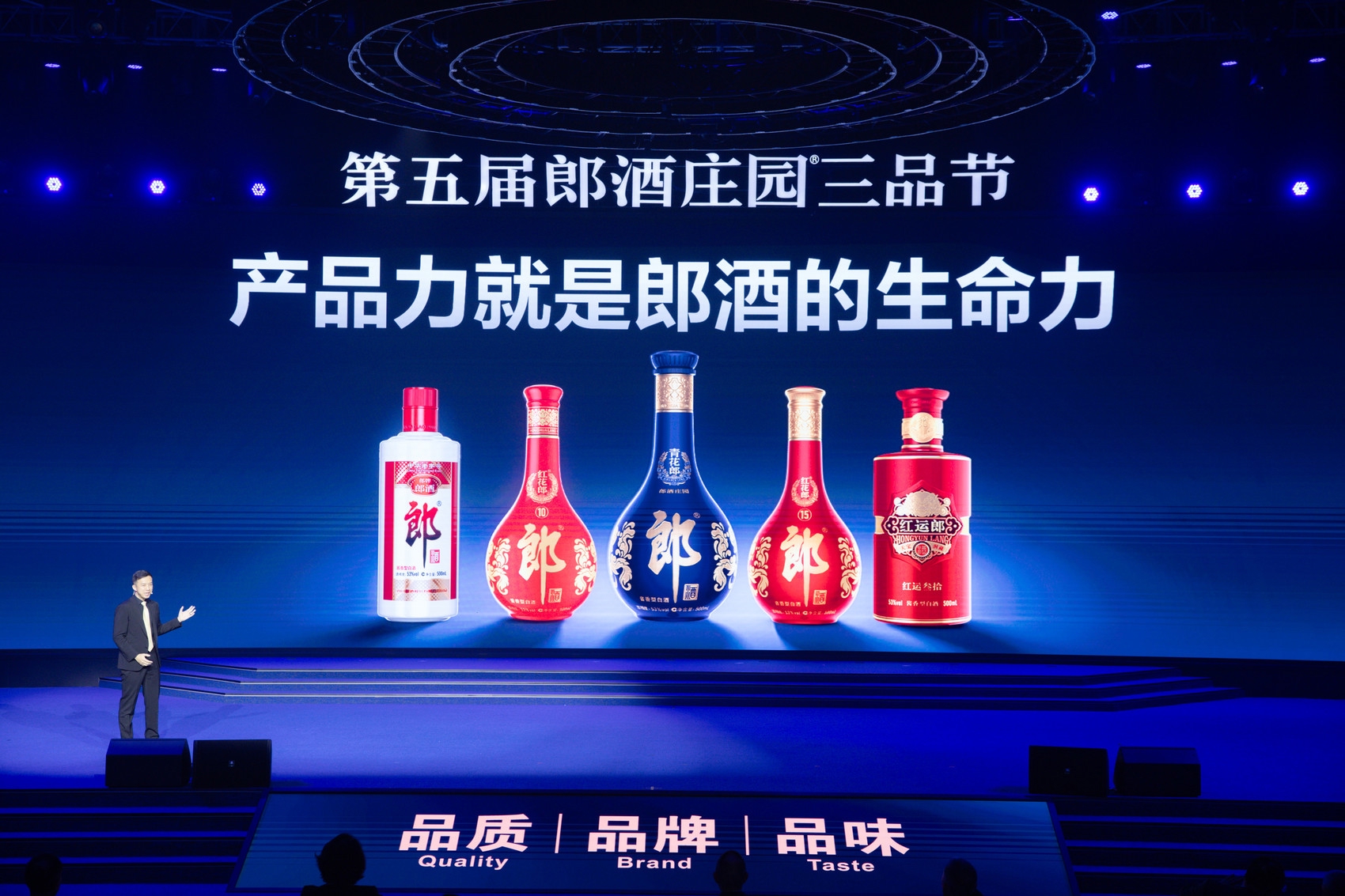 3月25日晚,赤水河左岸郎酒庄园,第五届郎酒庄园三品节(以下简称三品节)颁奖晚会举行,郎酒股份总经理汪博炜在晚会上发布两大战略动作,“亮剑”酱香五大战略单品。