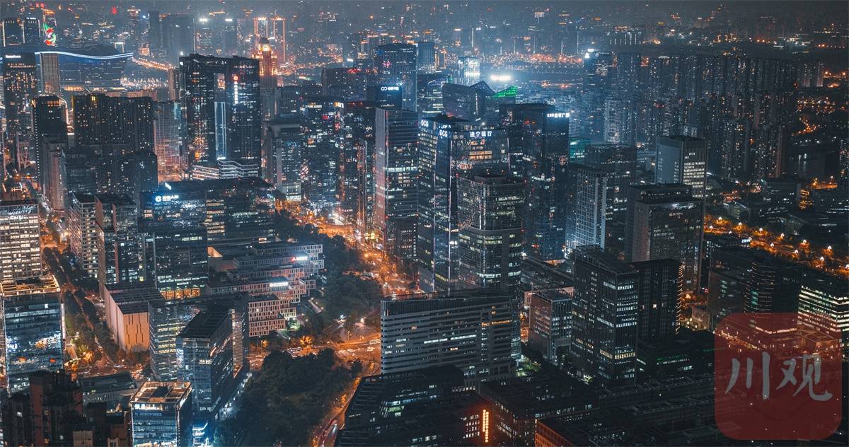 夜晚,成都天府三街片区写字楼灯火通明。图据逍遥