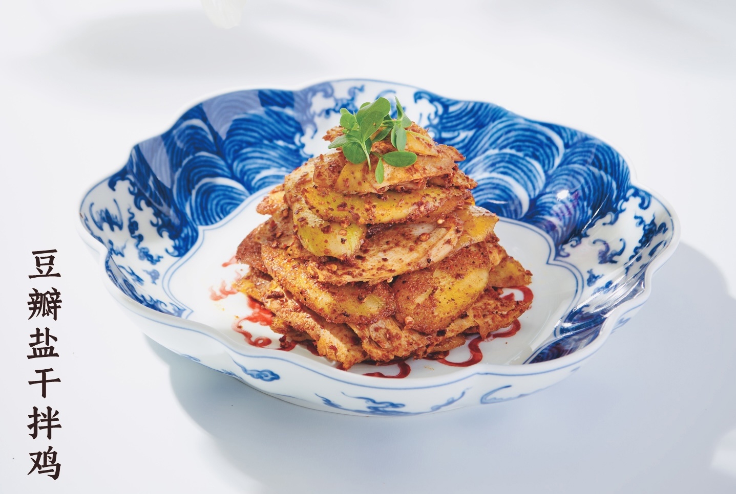 豆瓣风味宴上,豆瓣田园时蔬、豆瓣盐干拌鸡、豆瓣香水渍螺片、豆瓣比萨……各种创意川菜惊艳亮相。徐孝洪介绍,前三款菜品分别运用乳化豆瓣蛋黄酱、豆瓣盐、豆瓣香水三款豆瓣酱副产品,“乳化豆瓣蛋黄酱可与时蔬混合食用,即豆瓣沙拉。酵香豆瓣盐是使用液氮冷冻干燥三年陈香豆瓣酱制成,按压容器顶部按钮,可以自动研磨出盐末,佐以干拌鸡片或牛排等菜肴。”