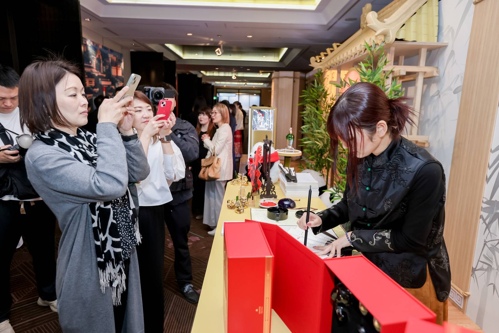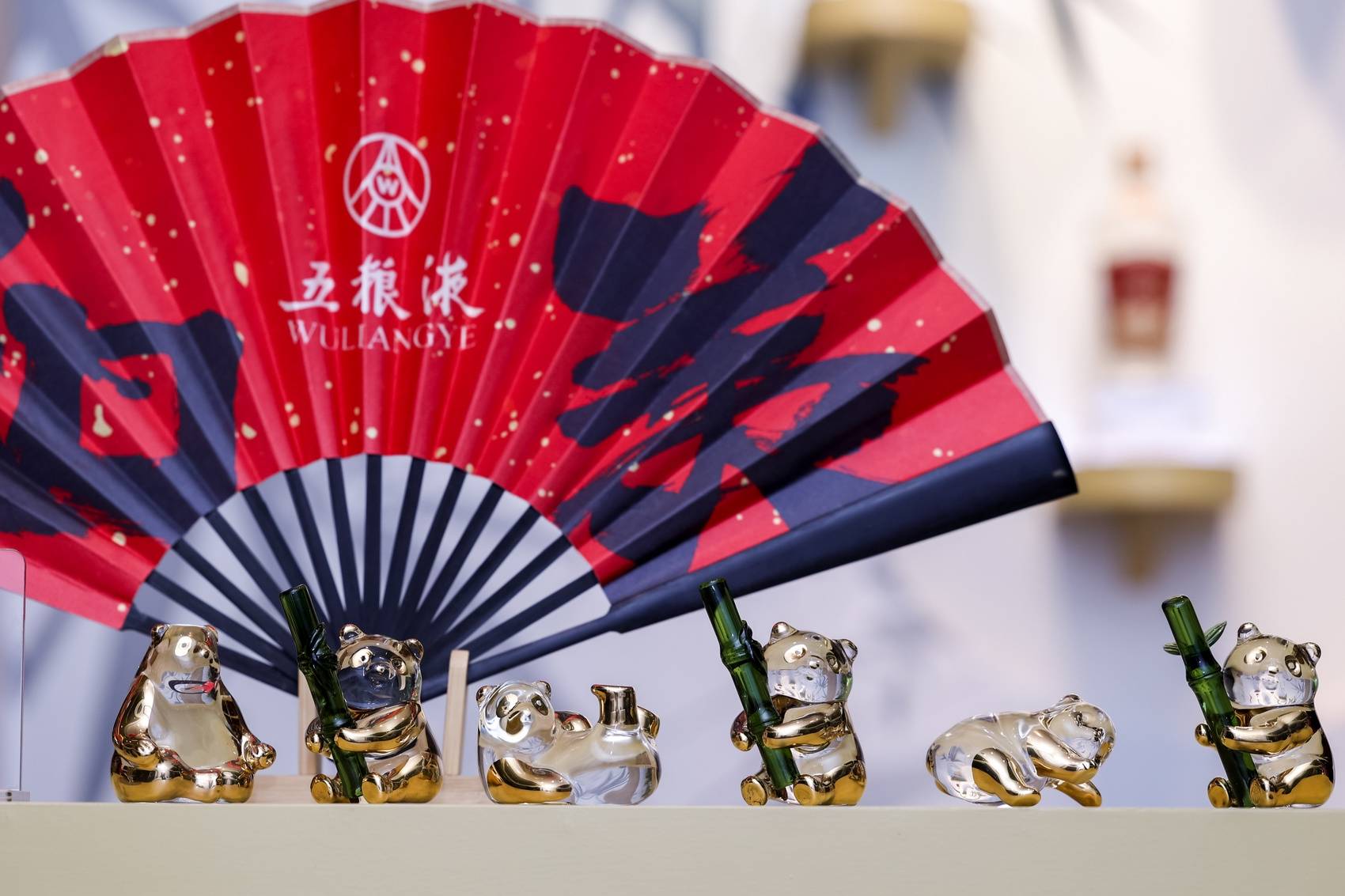 在大阪世博会上,五粮液设计了中国馆纪念礼盒。该礼盒以故宫红为主色调,礼盒中央以金线勾勒中国馆轮廓,四周点缀五粮、大熊猫、竹叶等文化元素纹样,盒内有用国家级非物质文化遗产代表性项目“灯工玻璃”技艺精心加工的大熊猫抱竹摆件,既呼应中国馆的形态和主题,也传递中国酒文化的匠心独运、和合之美。