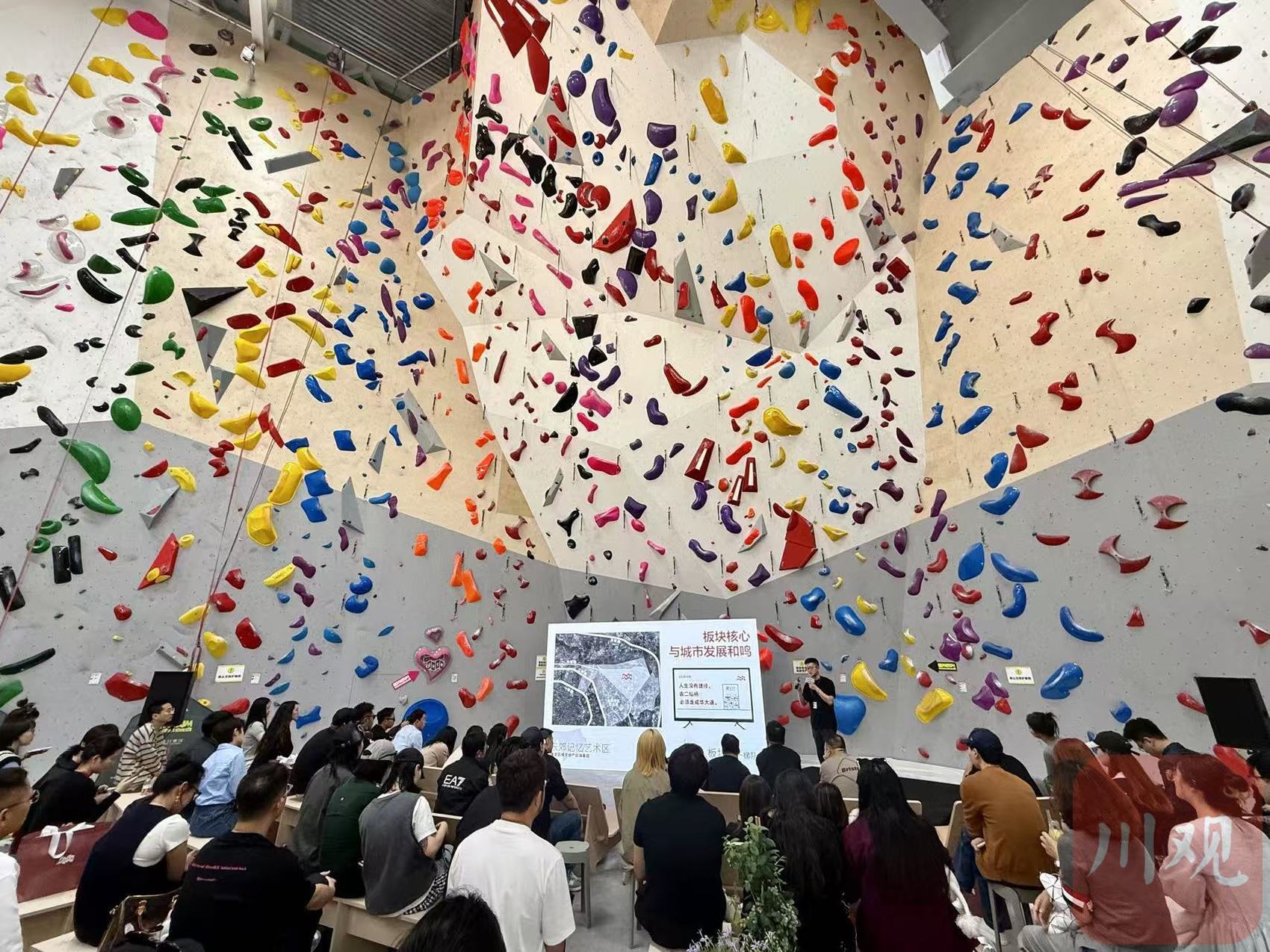 在成都市成华区二仙桥八里庄片区,“The Gate量子介”项目是对中车成都机车车辆厂片区工业文明遗址进行有机更新而打造的一座非标商业园区,集音乐演绎、艺术衍生、社交娱乐、零售体验等功能于一体。其中,量子攀岩率先亮相,室内攀岩面积达1200平方米,拥有15-17米最高标准岩壁,迅速成为成都攀岩爱好者的打卡地。