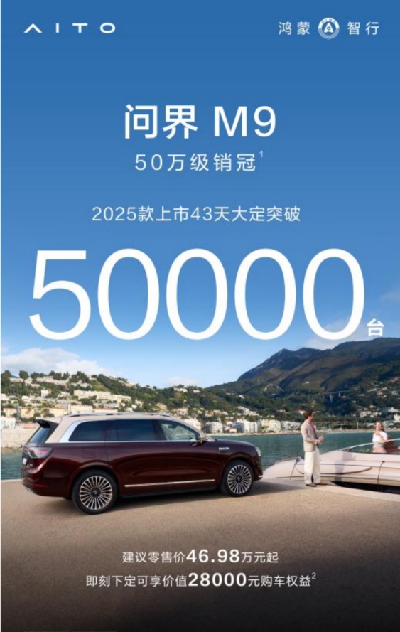 此外,自2025年5月7日至6月3日,购买问界M9 2025款赠送总计价值28000元的重磅权益,包括20000元的ADS辅助驾驶功能包补贴权益、6000元的舒享用车大礼包和2000元的车载卫星通信2年使用套餐。同时,问界M9车主焕新问界M9 2025款,享尾款减免3万元。4项实在的购车权益让这款车变得超值,喜爱问界M9 2025款的用户可趁机及时入手。