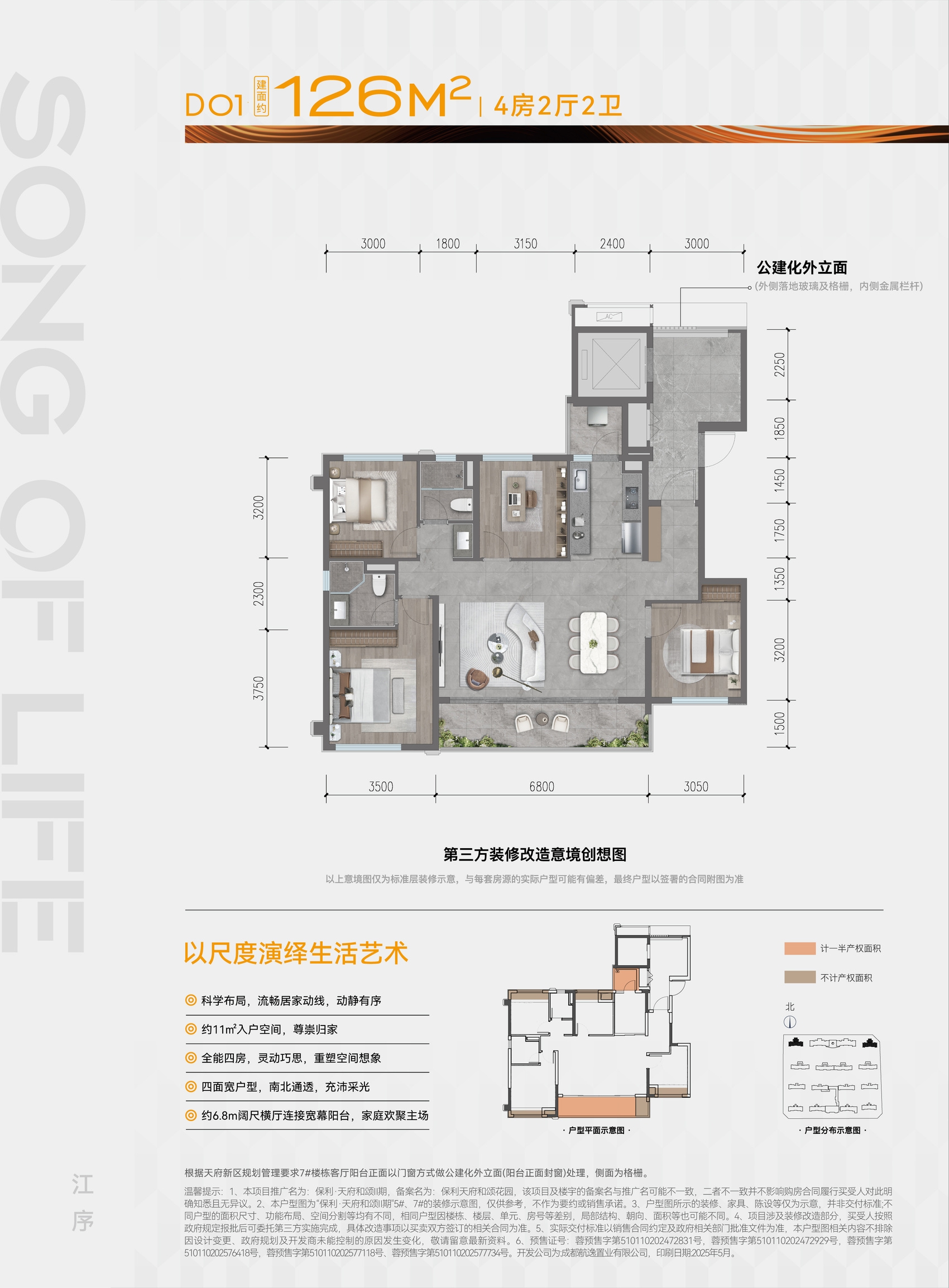 即将加推的约126平方米四房户型,空间布局合理,确保了居住者的舒适体验。约11平方米的入户空间,约6.8米的阔尺横厅连接宽幕阳台,为家庭欢聚提供宽敞的空间;全功能的四房设计,满足多成员家庭的需求,空间利用率高。同时,住户也可根据自身需要进行多功能改造;“四面宽”户型设计,使得室内采光充足、通风良好,提升了居住环境的舒适度。约199平方米瞰江大平层四房稀有产品,更是值得期待。其独特的魅力和价值,能让更多的消费者体验到“好房子”的魅力。