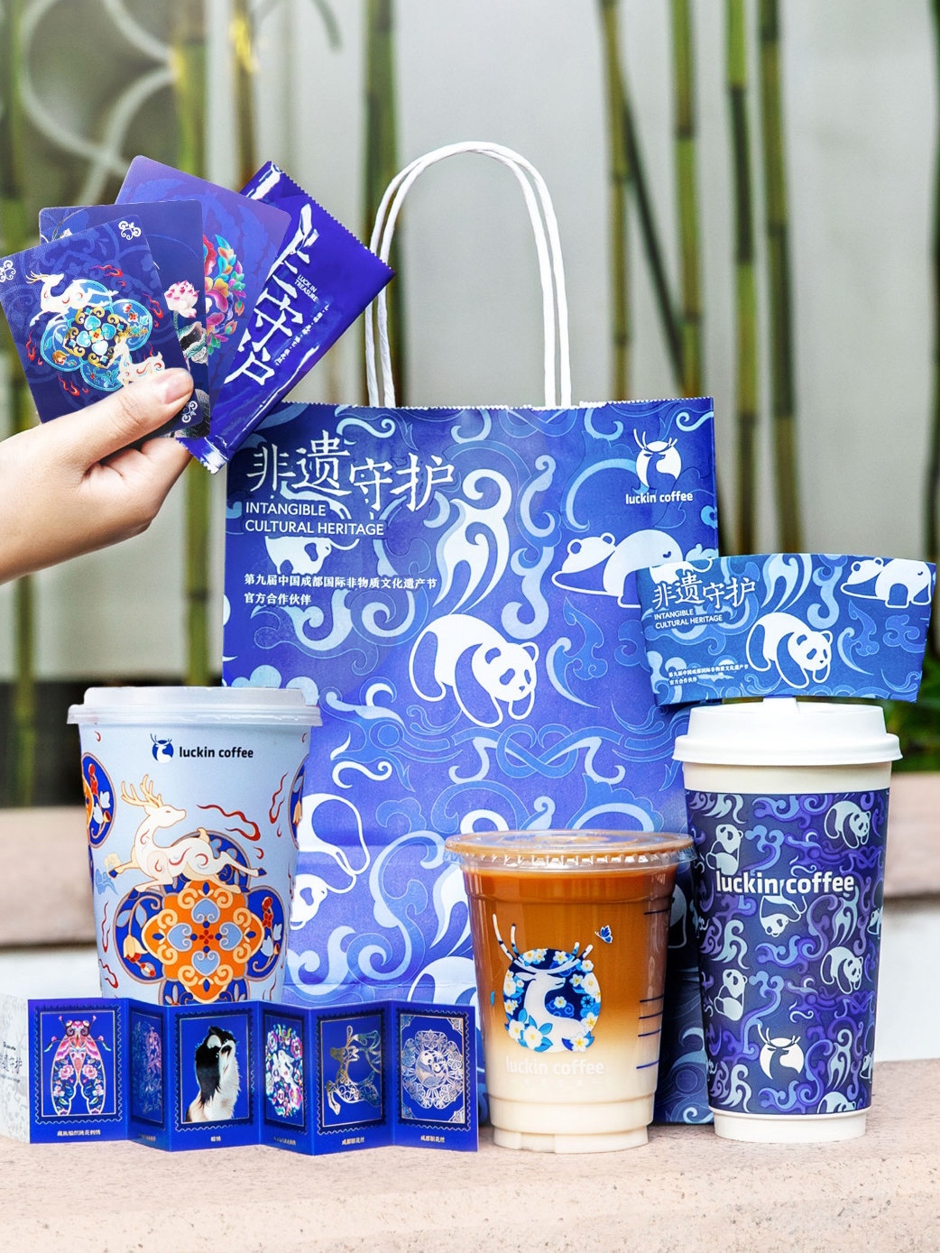 此外,这股“川潮”也在品牌视觉层面得到深化。作为第九届中国成都国际非物质文化遗产节官方合作伙伴,瑞幸咖啡在5月20日首次推出非遗联名系列,在包装、杯套及周边产品中巧妙融入蜀锦、蜀绣、成都银花丝等元素。“我们希望通过商业流量赋能文化传承,让非遗与日常消费产生化学反应。”瑞幸品牌相关负责人表示。