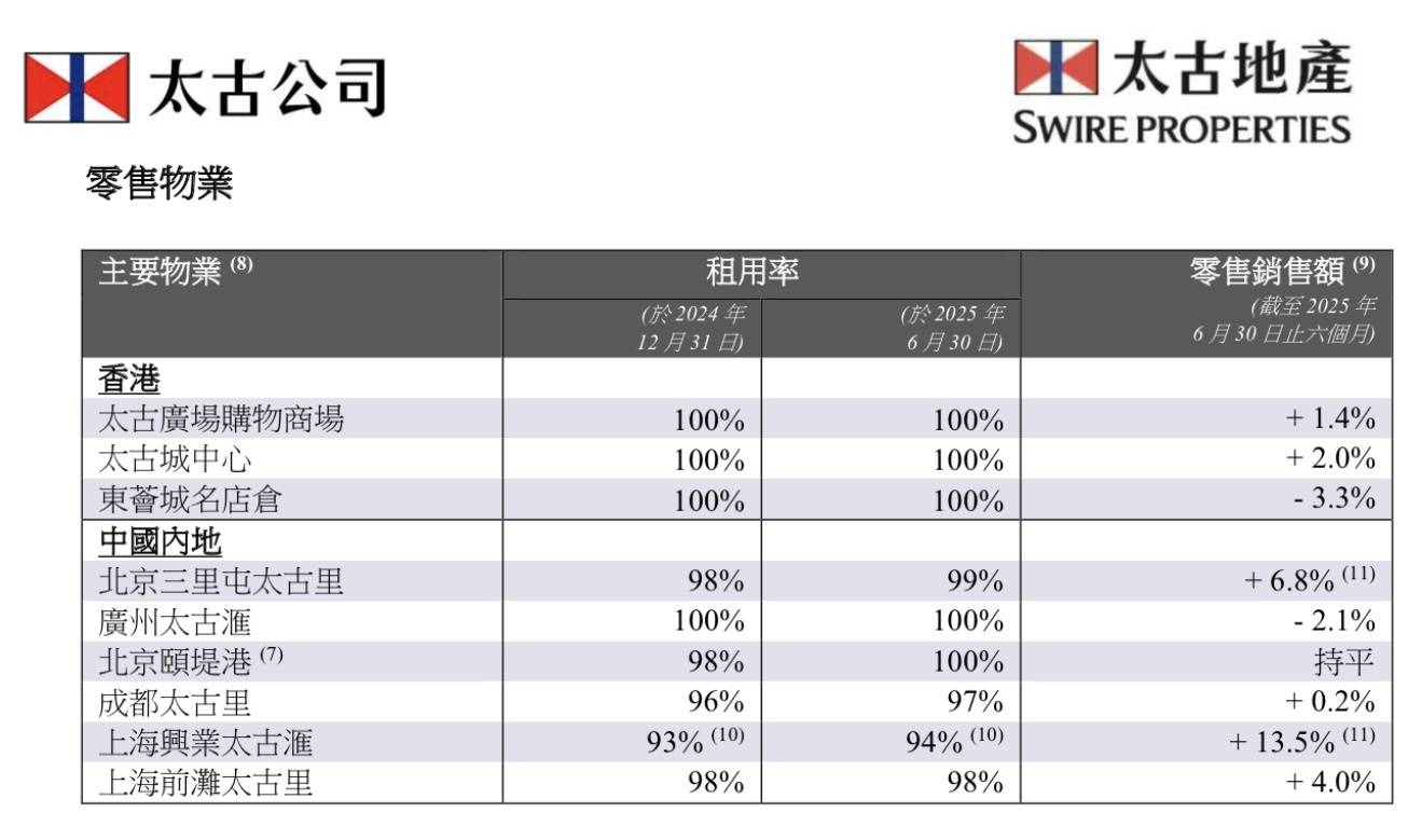 展望2025年下半年,太古地产在报告中预期市场对零售楼面的需求将保持审慎。尽管奢侈品牌零售商对扩张持谨慎态度,但对北京、成都和上海等具有高潜力和体验式消费的核心区域的优质楼面需求将会持续。总体而言,预期来自体育和休闲品牌的需求将会上升。