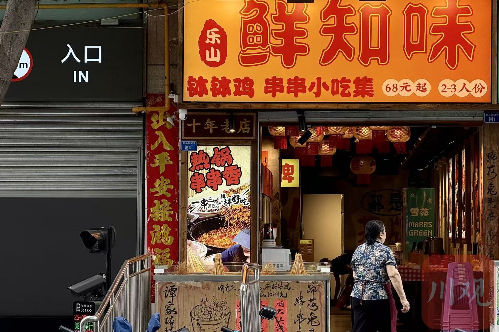 记者在该店所在的走马街留意到,附近商铺还有成都知名“苍蝇馆子”——“乐山鲜知味”的新店,其门口灶台外立面上标有疑似成都米其林入选餐厅“谭家”的同名钵钵鸡宣传。