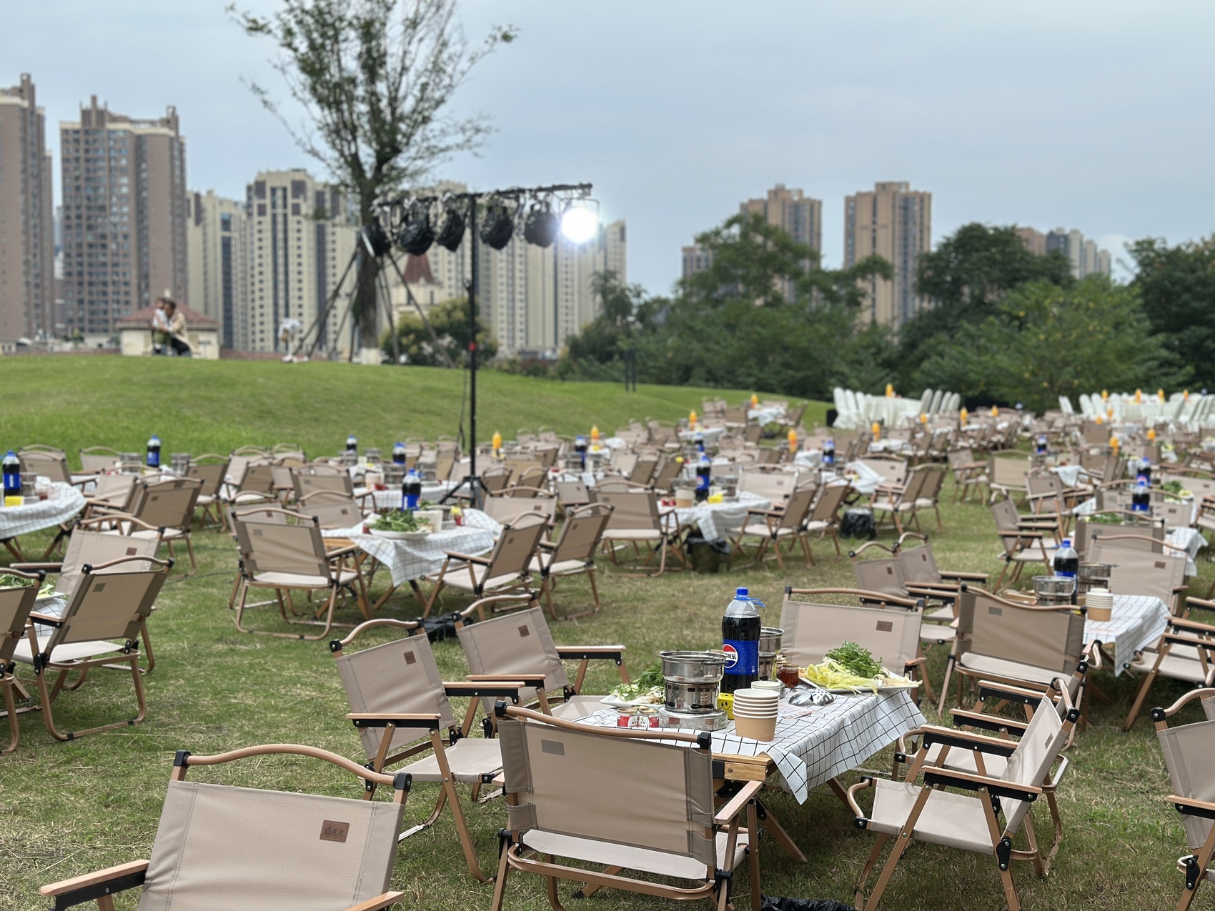 绿城诚园为业主提供就餐桌椅和食物。