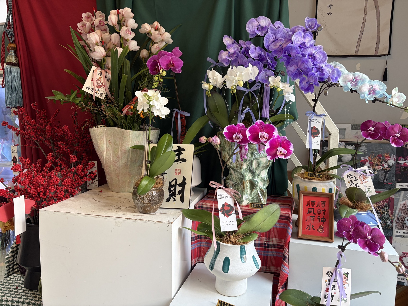 这种对于“省心”的考量,同样体现在对鲜切花的选择上。在年宵花专区,挂满红果的北美冬青人气颇高。商家直言,北美冬青受欢迎的关键在于,插瓶观赏期长达两个月,相比其他容易凋谢的鲜花,这份长久让消费者觉得钱花得实在。