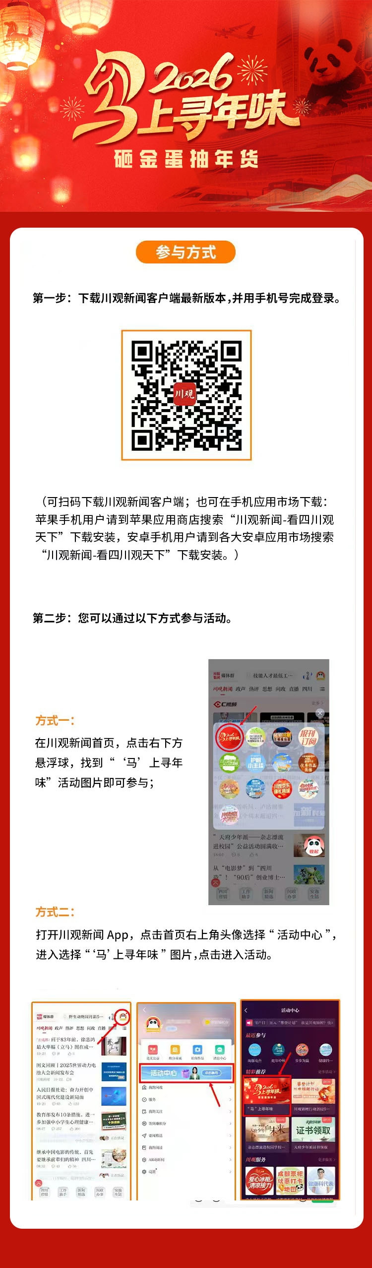 即日起至2月1日,参与“‘马’上寻年味 砸金蛋抽年货”活动。有机会获得成都五凤溪龙吟天城门票、水井坊小酒、宜宾特产礼包、特斯拉文创等精美奖品!