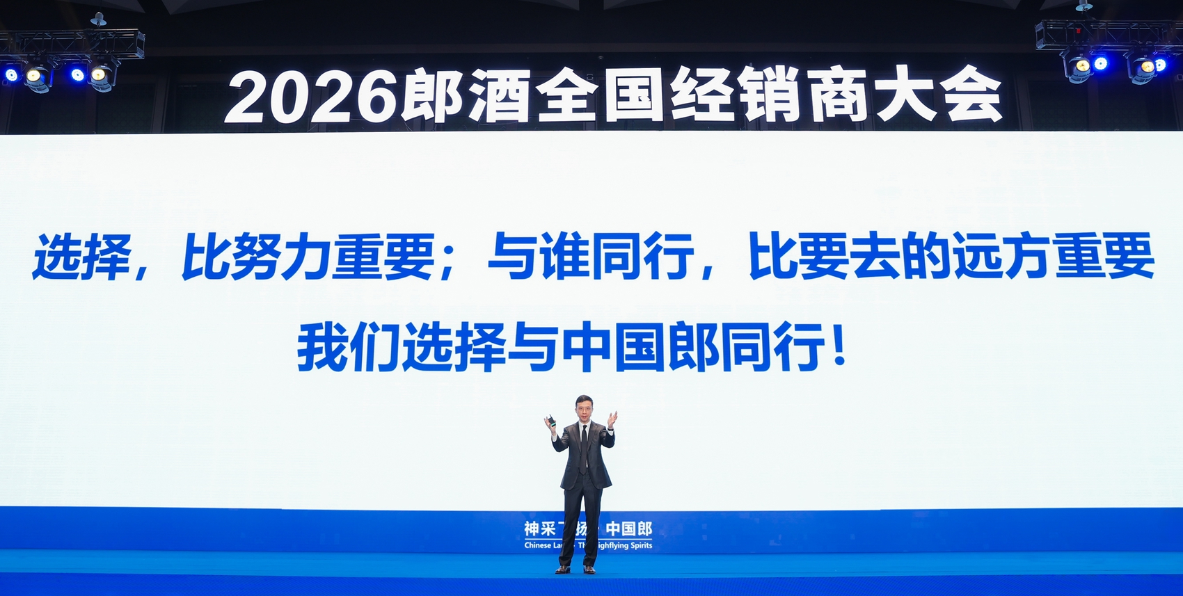 郎酒集团董事长汪俊林出席会议并发表《认知领先 感恩奋进 实干拼搏》主题讲话,感谢郎酒全体经销商和营销团队,厂商齐心拼搏,号召全体团队思想升级、认知领先,他表示,“郎酒品质、品牌、品味引领下的美好未来看得见,战略性增长与经营性增长协同并进看得见”。