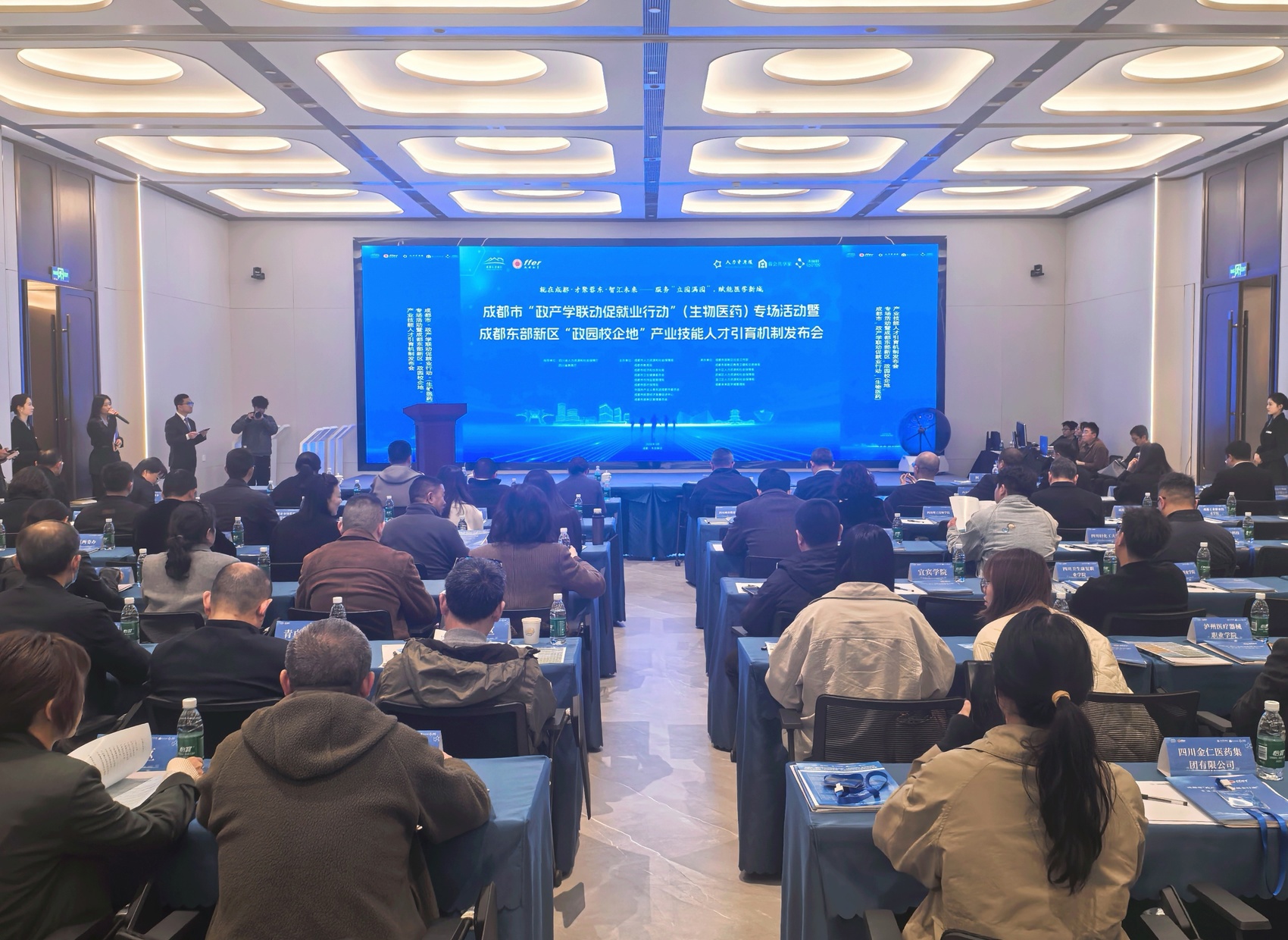 3月13日下午,天府锦城实验室(未来医学城)专家公寓学术报告厅内座无虚席,成都市“政产学联动促就业行动”生物医药专场活动在此拉开帷幕。这场由成都市人力资源和社会保障局、成都市教育局、成都市市场监管局等部门联合主办,成都东部新区承办的活动,不仅是一场招聘会,还是一次政产学三方协同发力的深度实践。