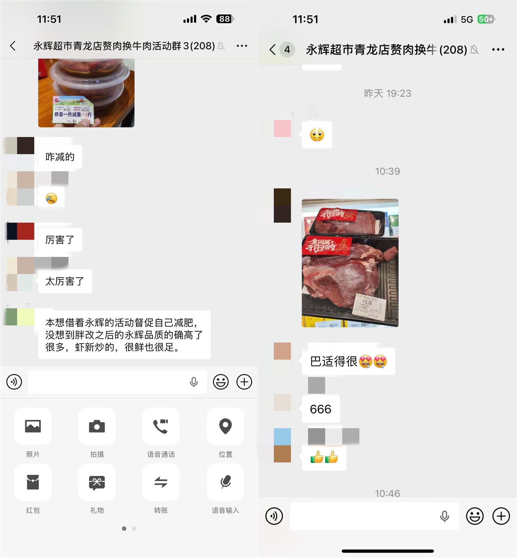 永辉超市成都青龙店相关活动群互动情况。图据受访者