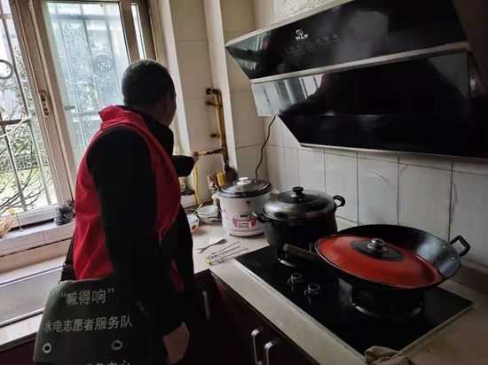四川在线消息(记者 丁宁 摄影 报道)近日,重庆加州大火为我们敲响了春节期间火灾隐患的警钟。据悉,事故发生前楼上邻居曾给二楼在厨房熏香肠的老大妈提出危险信号,并拍照留下失火证据。增强水电安全意识、提供专业隐患排查成为春节期间居家安全的重中之重。成都市双流区黄甲街道就有这样一支由专业水电工组成的“喊得响”水电志愿者服务队,以公益服务的形式定期入户排查,为居民春节期间居家安全保驾护航。