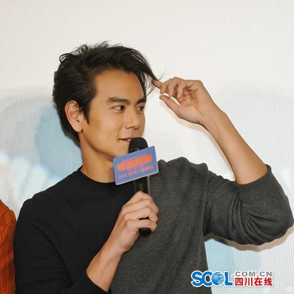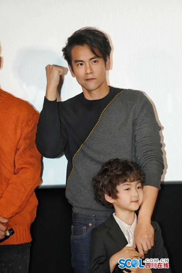 提到戏中扮演父亲的角色,彭于晏觉得非常有意思,觉得这是一个新的挑战,还现场问“儿子”自己演的怎么样。