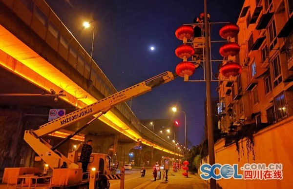 成都市城管委相关负责人介绍,灯笼安装行动已从天府广场-人民南路-天府大道、人民北路-火车北站、蜀都大道东西段三条线路同时进行,大约要在10000座灯杆上安装灯笼。安装时间集中在晚上10点至次日早上6点,避开车流高峰,不影响市民正常出行。“今年还将更加注重日常监管,确保每一盏灯笼都能亮起来。”该负责人称。