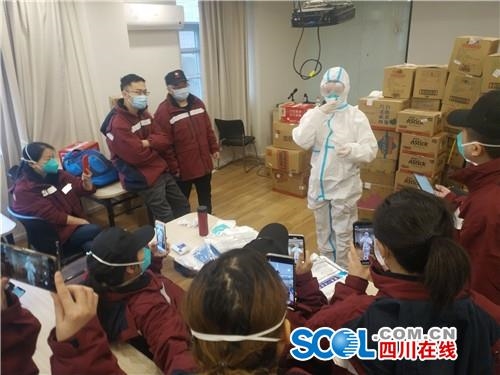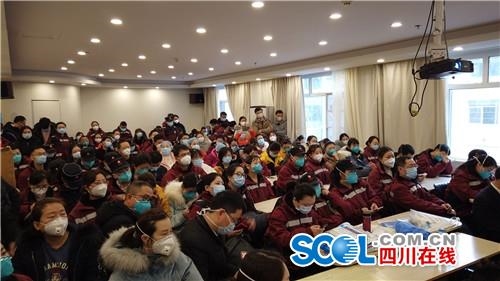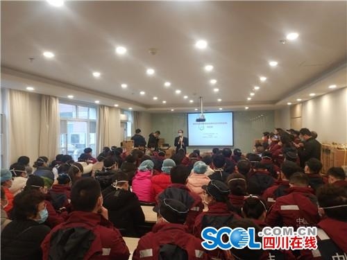 四川在线消息(记者 杨丹)1月26日上午,四川援鄂医疗队在驻地酒店进行了院感培训,北京地坛医院感染二科主任医师蒋荣猛、北京大学第一医院感染管理科主任李六亿对全体医护人员开展,在防护服具穿脱、医疗废弃物的管理、消毒管理工作、一次性医疗卫生用品的审核及使用后处理等方面进行了详细的讲解,确保医护人员入院后工作万无一失。