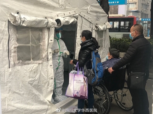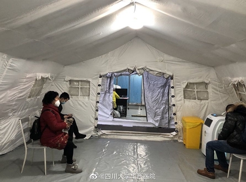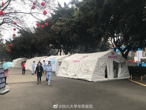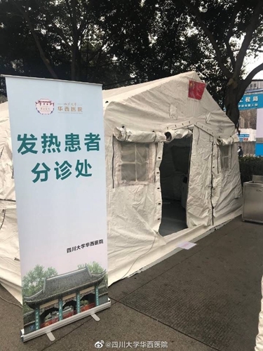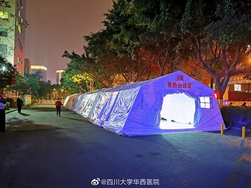 四川在线消息(记者 杨丹)1月27日下午,中国国际应急队(四川)在华西医院急诊科外搭建了四顶帐篷,主要用于发热病人的初筛和分诊,帐篷内配备有水、电、网络,可满足相应需求。帐篷已于27日晚投入使用,这将有效分流发热病人,降低交叉感染风险。中国国际应急队(四川)前期已调集队员前往武汉前线支援,部分应急医疗设备也已调至华西医院本部备用。