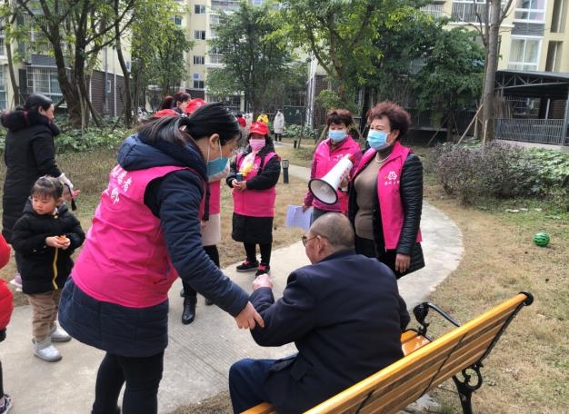 崇州市街子镇妇联巾帼志愿者们自发组成小分队,对辖区内道路过往车辆进行信息核实登记,大力宣传普及健康知识,鼓励个人、家庭积极参与健康行动,并且引导妇女群众做好垃圾分类。