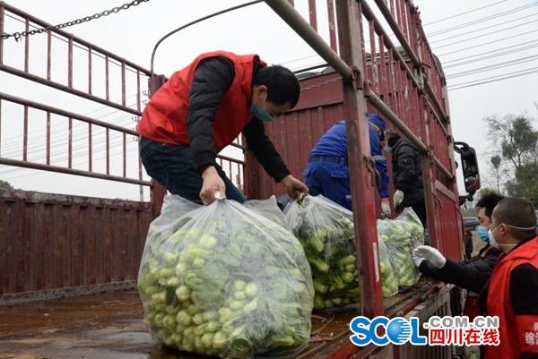 2月1日一大早,崇州大划街道石桥村的一片田地里人头攒动,一片繁忙景象。他们是来义务帮助爱心菜农程小蓉采摘小青菜的,他们或手拿小刀快速采摘着绿油油的小青菜,或精心择掉黄叶,将最嫩最新鲜的菜心装进袋子;或迅速将装满蔬菜的袋子搬运到集中地方等待装车。