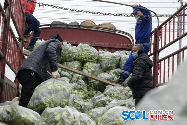 临近中午,运输车来到了现场。车主张义是崇州防震减灾救援队队员。他说:“听说菜农捐献物资需要找车运过去,我在第一时间就报名了,我用我自己的车把菜运过去。”平时跑这一趟,运输费用一般需要七八千元,这次他个人承担全部费用。“抗击疫情嘛,大家共同努力。”