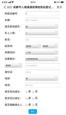 打开手机上的支付宝或微信“扫一扫”扫描二维码,进入“成都市公路入境检疫站登记系统”,来蓉人员如实登记基本信息,点击底部“提交”。