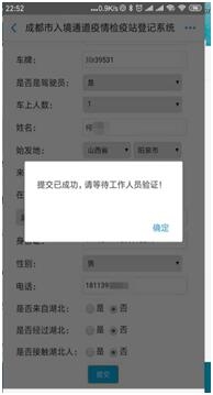 值得注意的是,驾车进入成都前可预先填报相关信息,请确认收到“提交已成功,请等待工作人员验证!”提示框,确保预约成功;预约成功后有效期为24小时;到达检疫点后,工作人员会根据车牌号调出登记数据核实,驾乘人员无需再进行任何操作。