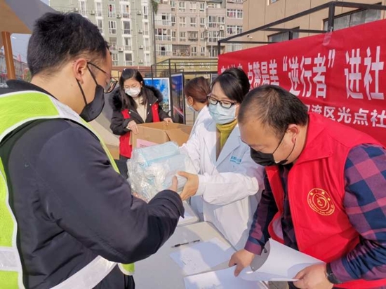 据悉,光点社工根据前期实地摸排调查,确定了黄甲街道、怡心街道、黄龙溪镇等场镇中集中居住居民多、社区工作人员摸排工作量大、口罩等防疫物资紧缺的6个社区(村)作为捐赠对象。记者了解到,为保证社区一线工作人员日常工作不受影响,并尽量降低人员聚集密度,各社区(村)均派出代表前来接收捐赠。“非常感谢这批及时的物资,为我们的一线工作人员注入强心剂,让他们能做好防护、安心工作。”怡心街道三江社区书记邓家宜说道。