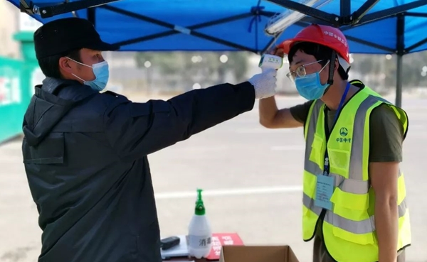 项目进行封闭式管理,每天对所有进出人员两次测量体温。由于工人居住的休息区与施工工地现场有两三公里间隔,项目部专车每日接送工人往返,不允许工人自行前往。复工前已全面摸排全体工作人员,建立了人员健康卡和台账,设置了专人专岗和专项资金专门负责防疫。