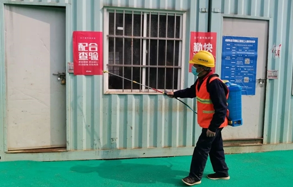 此外,项目部工人生活区域还专门设置了3间隔离房间,为之前医疗室改造,以供临时出现发热等情况的人员进行暂时隔离,应急车和专职司机随时待命。一旦发生应急情况,司机和车辆即刻出发将人员送到最近指定医院,一旦诊断结果出现疑似或确诊情况,工地立即内部停工隔离,并全面排查和消杀。