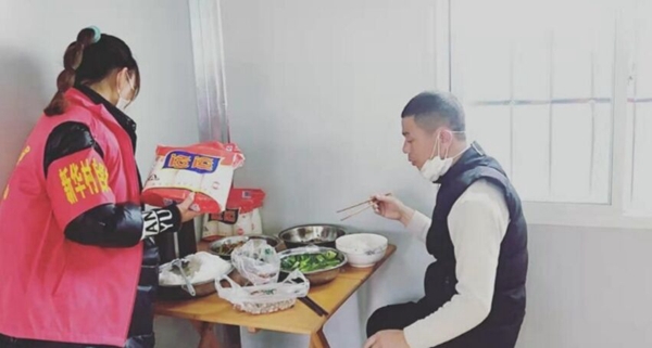“我们执勤点上的志愿者有些离家较远,只有换班才能回去吃饭,人手又紧,经常错过饭点,就用方便面解决。张建一直是个热心的人,很关心村上的事务,以前还当过我们村的团支部书记,这次主动给大家送饭,真的让大家很感动,大家都很感谢他”新华村支部书记李建国如是说道。