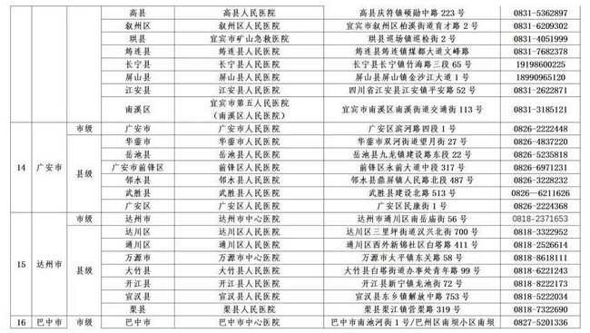 为进一做好全省新型冠状病毒感染肺炎患者医疗救治工作,按照集中患者、集中专家、集中资源、集中救治的原则,我省确定了208家省市县级定点医院,现将四川省新型冠状病毒肺炎救治定点机构信息公布如下: