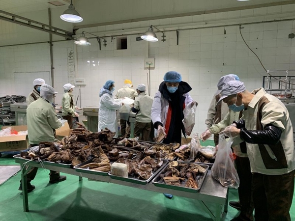 200多斤“爱心腊肉”经过真空包装后已经送往湖北武汉。“我们已经联系上了在武汉的一位爱心人士,通过她,把我们的腊肉香肠第一时间送到奋战在一线的医护人员手中。”李晓佳说。(图由九江街道提供)