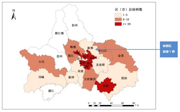 为加强社区防控,常住成都病例按照现住址、外地来蓉病例按照暂住地址划分,累计确诊病例分布于18个区(市)县:
