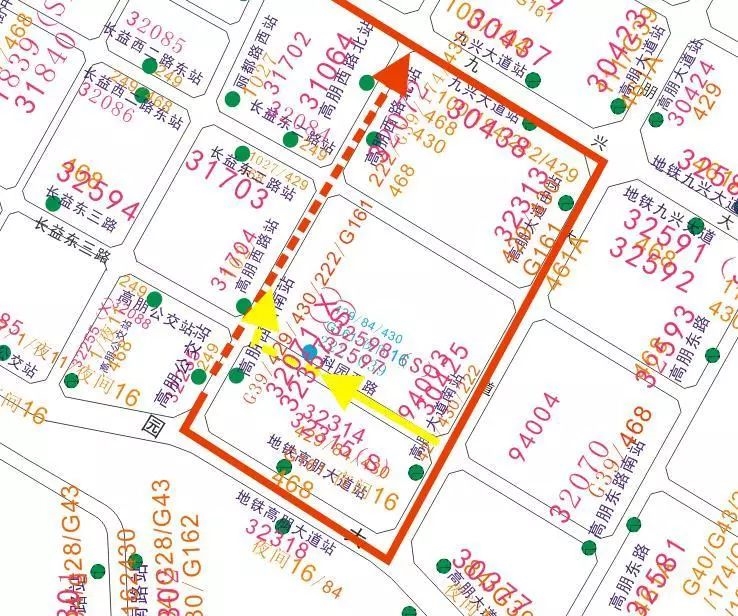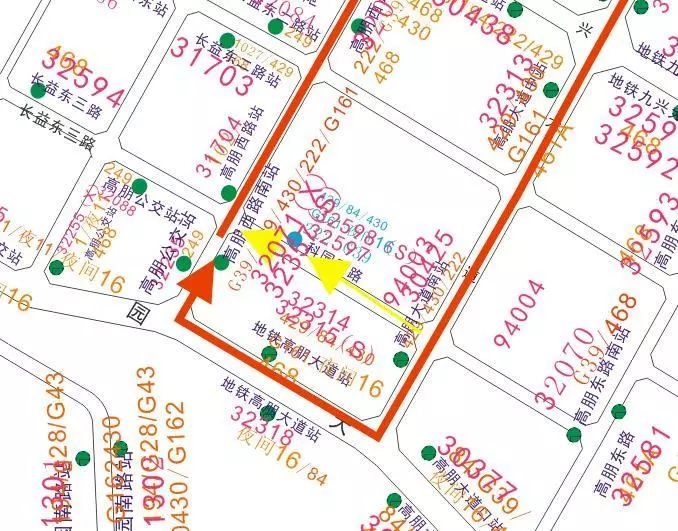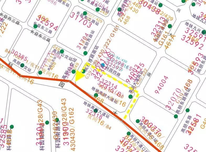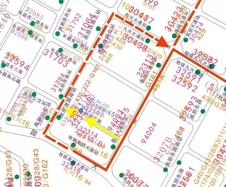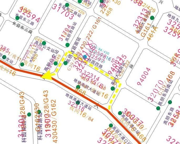 站点设置:临时取消高朋大道南、高朋西路南、地铁高朋大道站;临时增设科园四路。