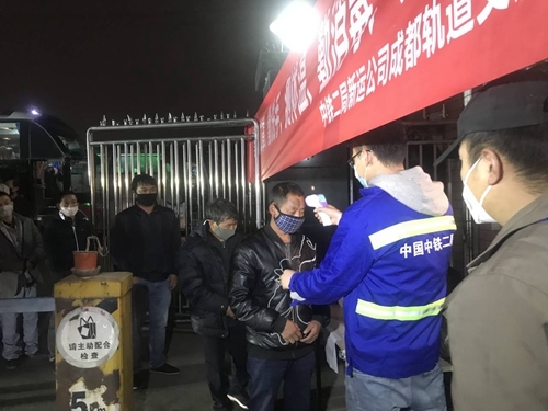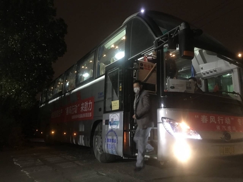 四川在线消息(记者 邓童童)2月22日晚21时许,经过800多公里路程,2辆客运包车搭载43名来自云南曲靖的成都地铁建设人员顺利抵达成都双流区嘉里路地铁8号线轨道标项目部。这是自1月26日成都停运省际客运班线以来,第一批乘坐跨省客运包车返回成都的务工人员。